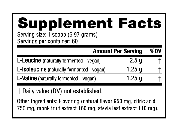 BCAA es una mezcla de aminoácidos de cadena ramificada fermentados de forma natural y limpia que ayuda a reparar y reconstruir los músculos durante o después del ejercicio intenso. BCAA contiene los aminoácidos más puros que tu cuerpo necesita en una proporción ideal. Tiene sabor natural y no contiene colorantes, saborizantes ni edulcorantes artificiales.