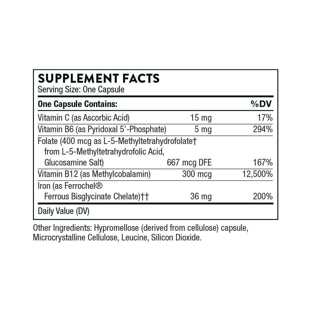 - Formas activas de vitaminas B12, B6 y folato, con vitamina C para un enfoque mejorado de la salud de los glóbulos rojos*
