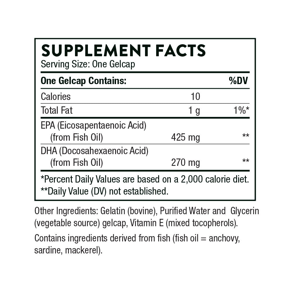 Los dos ácidos grasos omega-3 más importantes del pescado, EPA y DHA, son beneficiosos para el sistema cardiovascular.* Estos dos ácidos grasos favorecen la salud de los vasos sanguíneos y la función endotelial vascular, y ayudan a mantener los niveles de triglicéridos y colesterol ya normales.* También favorecen la salud del cerebro, la cognición y el estado de ánimo.* Thorne's Super EPA ofrece el aceite de pescado más puro y de mayor calidad disponible. Se utiliza destilación molecular para garantizar la eliminación del colesterol y los contaminantes de las materias primas, incluidos los PCB y los metales pesados.